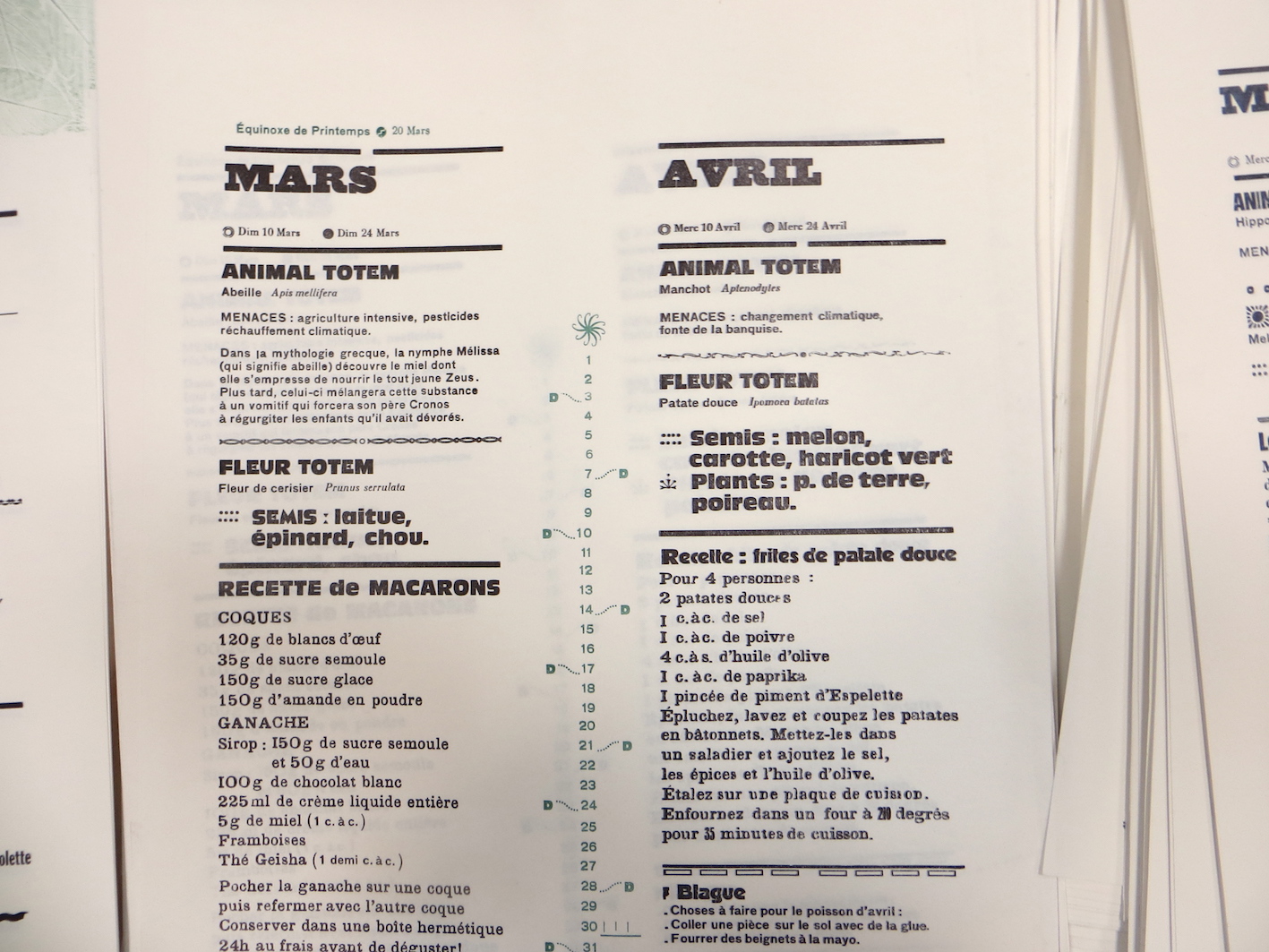 m.u.r.r. a invité la classe de 3ème du collège Jean Lolive de Pantin à composer un Almanach jardinier conscient des menaces polluantes actuelles, pour l'année 2024. Tout a été composé en plomb, ou gravé sur linoleum, et typoimprimé en 69 exemplaires. Il a été exposé à la Biennale du design et de l'artisanat d'art, Emergences, en Juin 2023. Avec le concours des professeurs A. Celiamen et A. Vesin, du principal M. Menant et de son équipe pédagogique, Avec la participation de : Gofran Alioui, Yanis Azem, Lili Bayle-Sow, Jasser Boujdidi, Erna Bronja, Axel Chapet, Olivia D’almeida, Jassem Ghanem, Zinab Labiadh, Nadia Pierre, Ranya Rahmoune, Alice Sang-Dai, Kahina Sekkiou, Daniela Sessou, Sana Shaikh, Mutsim Tasheer & Inna Toure. Multiples remerciements : à l'accueil de Dolorès de la JAD, aux Jardins Ouvriers d'Aubervilliers ; aux opératores typo-active.f.s P. Bouigues, V. Busson, L. Garcia, V. Gervaise, T. Perkins.